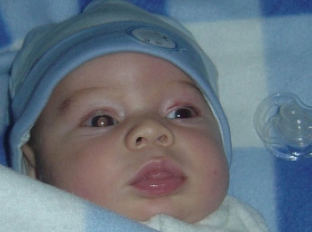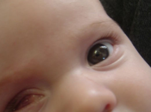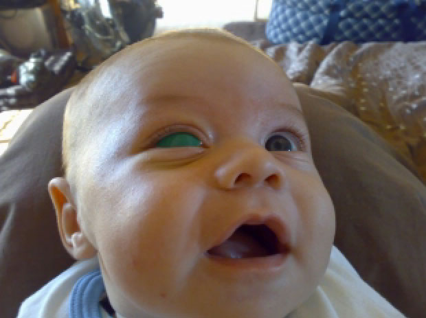 At 6 weeks old he was diagnosed with Rb after we asked the doctor to check his eyes and was referred to an ophthalmologist. Looking back at photographs the first clear while pupil was noticeable at 4 days!