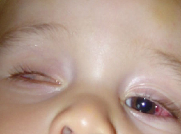 After an MRI and a B-scan he had an enucleation of his right eye as about 75% of his eye was filled with tumour. He was 8 weeks old.